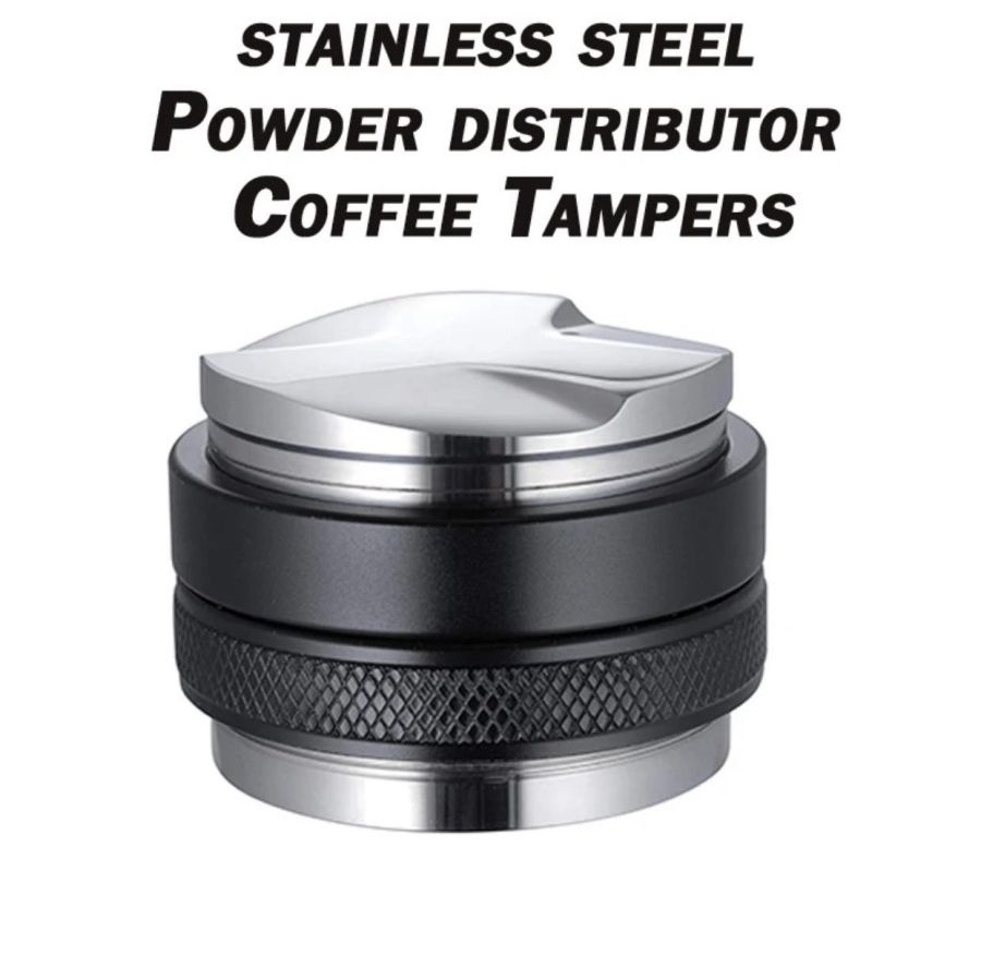 طرف يستخدم لتوزيع البن بشكل متساوٍ، والطرف الآخر يعمل كمكبس لضغط البن.